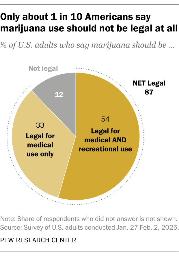 Only 12 percent of U.S. adults think cannabis should remain prohibited across the board.