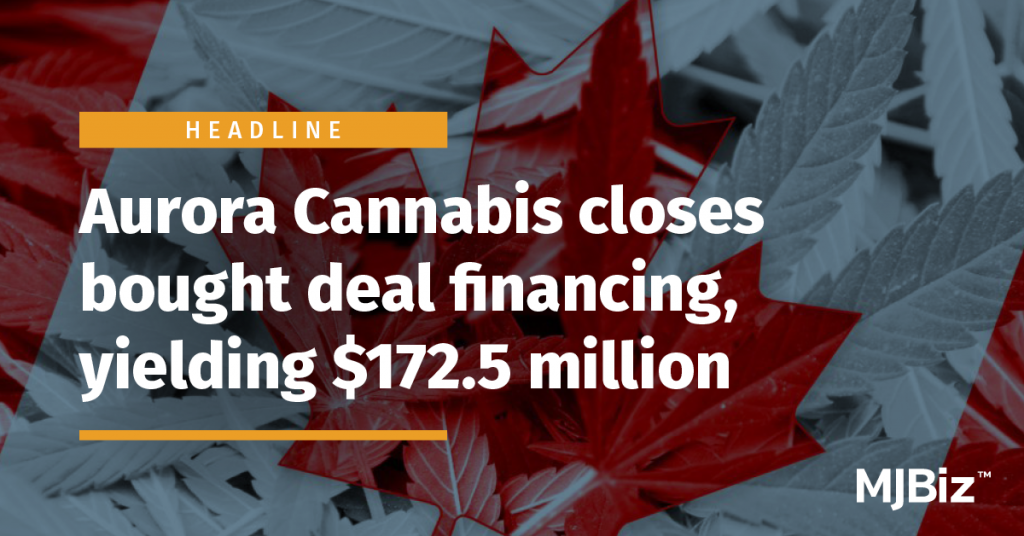 Canadian marijuana producer Aurora Cannabis said it received gross proceeds of $172.5 million from a bought deal offering after the underwriters’ over-allotment option was fully exercised.