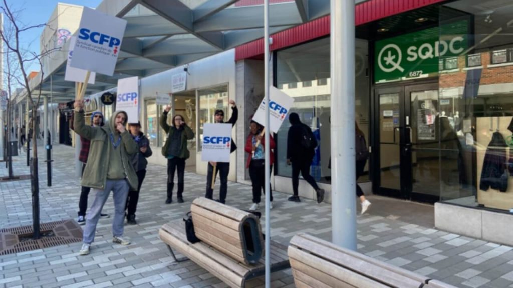 The union said the action included 300 workers, but the SQDC put the number at roughly 250 employees.