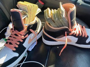 No more footloose and fancy-free for a man found this week with US$25,000 ($31,000) and an undisclosed amount of illegal cannabis stuffed in a pair of Air Jordan shoes during a traffic stop in Texas.