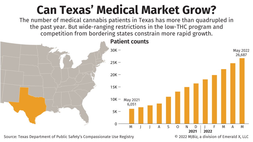 The number of medical marijuana patients in Texas has quadrupled over the past year, but MMJ companies there still find it tough going and are betting that, over time, the market will be overhauled and provide greater business opportunities.